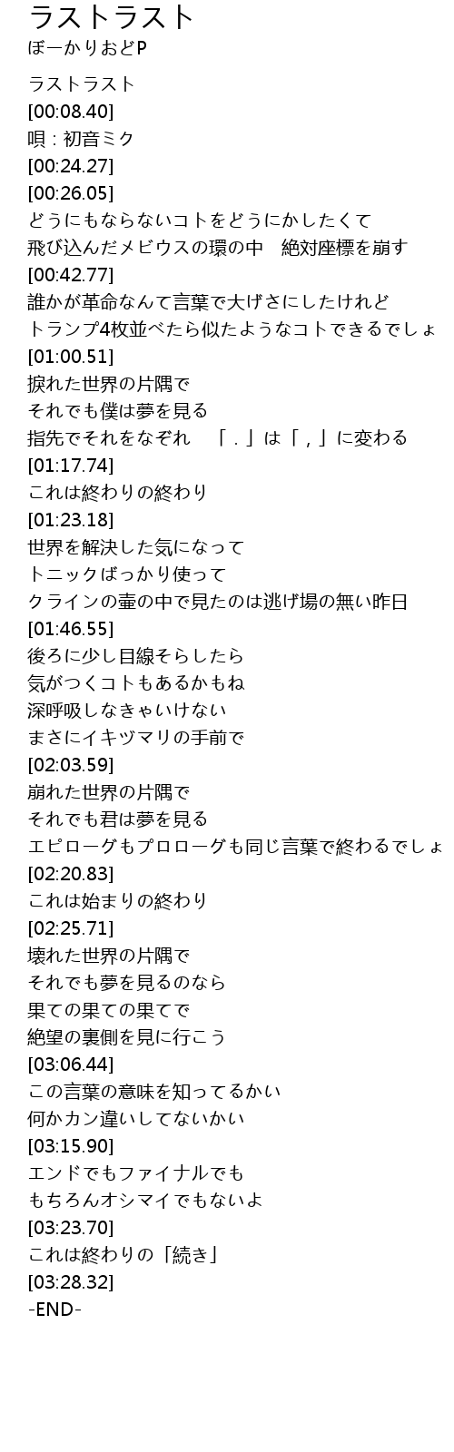 | [02:12.70] | エピローグもプロローグも同じ言葉で終わるでしょ |