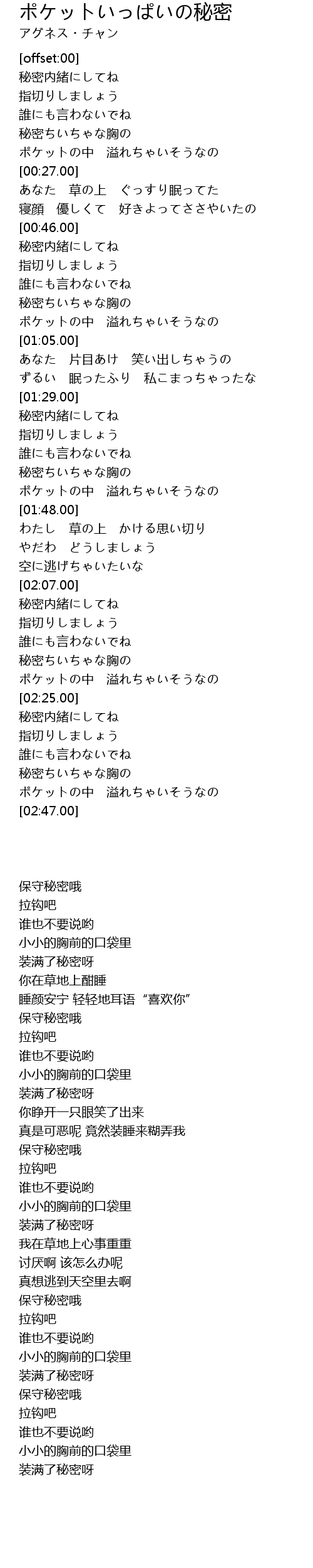 | [02:38.00] | ポケットの中 溢れちゃいそうなの |