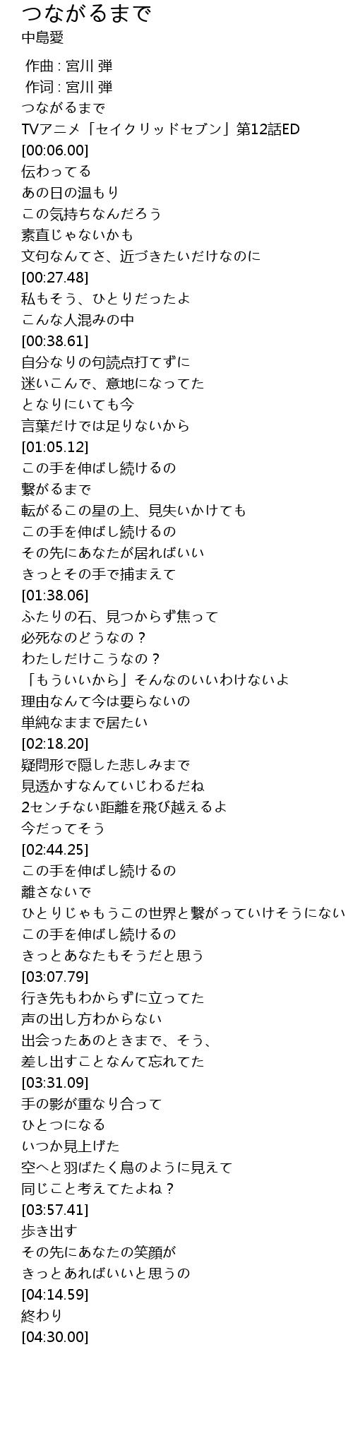 | [00:01.00] | TVアニメ「セイクリッドセブン」第12話ED |