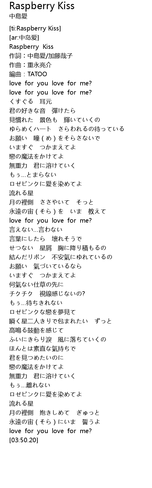 | [00:01.01] | Raspberry Kiss |