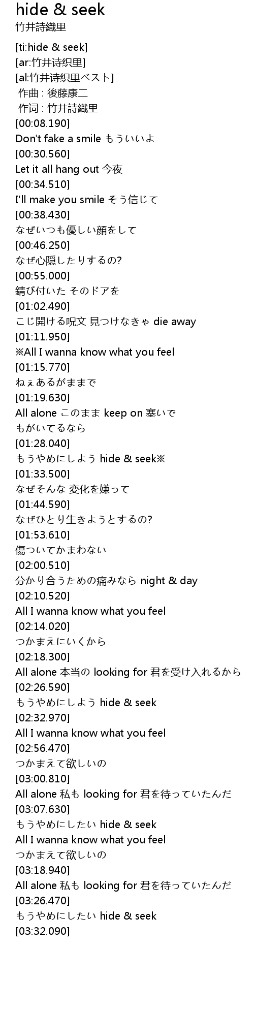| [03:29.570] | もうやめにしたい hide & seek |