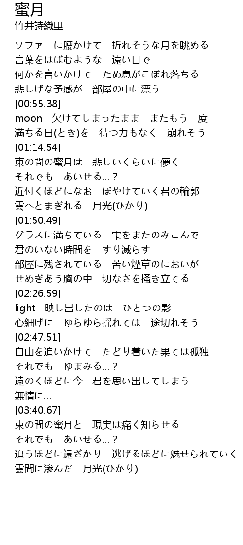 | [00:56.30] | moon 欠けてしまったまま またもう一度 |