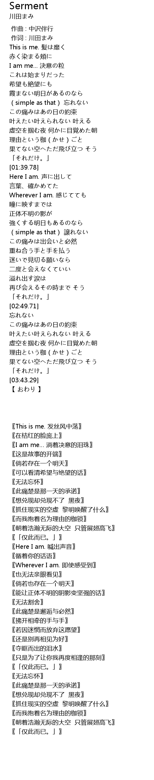 | [00:38.44] | This is me. 髪は靡く |