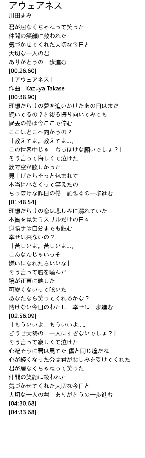 | [00:32.90] | 作曲∶Kazuya Takase |