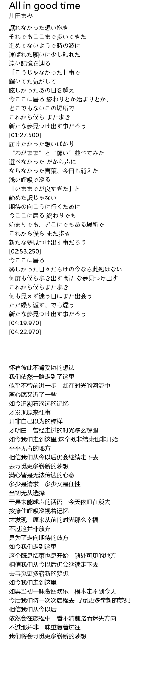 | [04:11.150] | 我们将会寻觅更多崭新的梦想 |