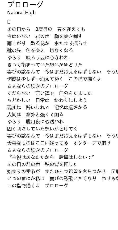 | 喜びの歌なんて 今はまだ歌えるはずもない そう思ってたけど | |