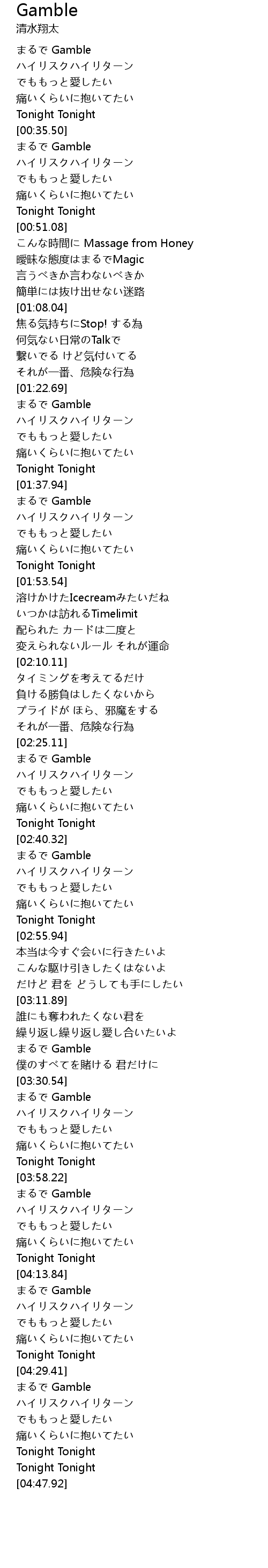| [03:23.57] | 僕のすべてを賭ける 君だけに |