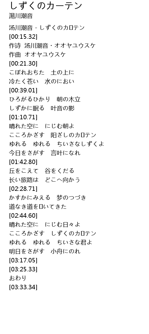 | [00:00.00] | 汤川潮音 - しずくのカ�テン |