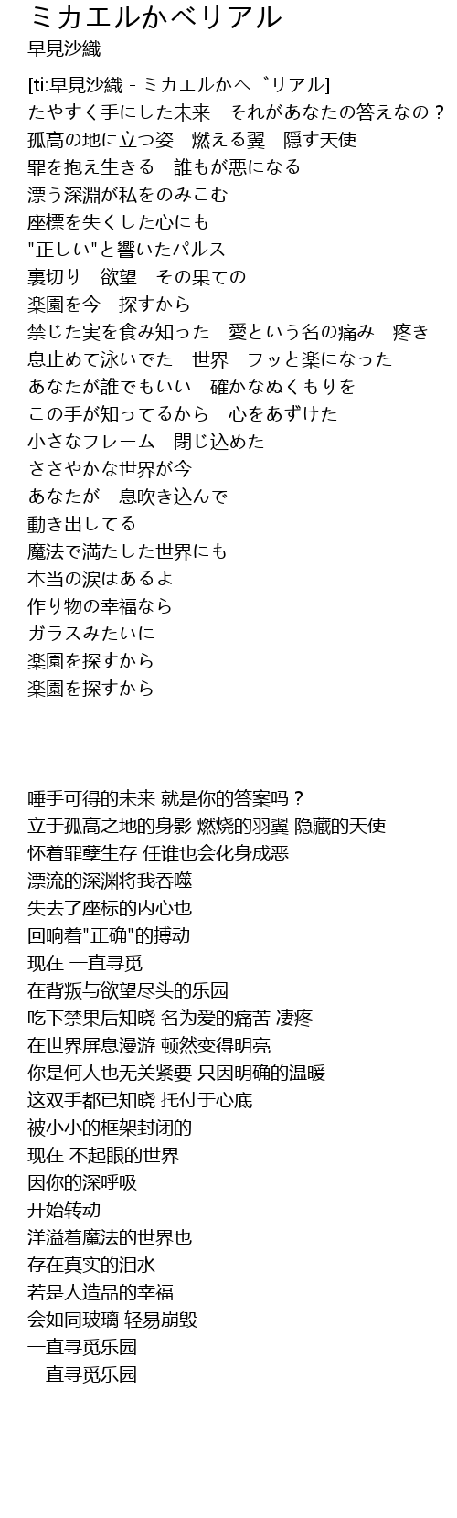 | [ti:早見沙織 - ミカエルかベリアル] | |