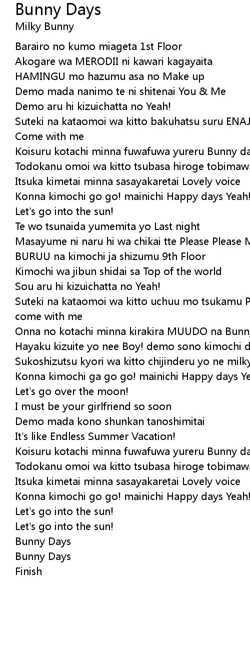 Koisuru kotachi minna fuwafuwa yureru Bunny days |