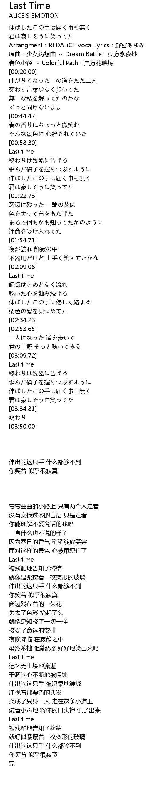 | [03:11.27] | 終わりは残酷に告げる |