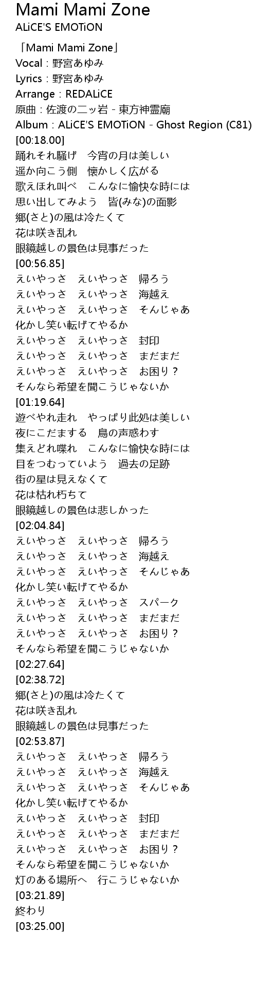 | [00:15.00] | Album:ALiCE'S EMOTiON - Ghost Region (C81) |