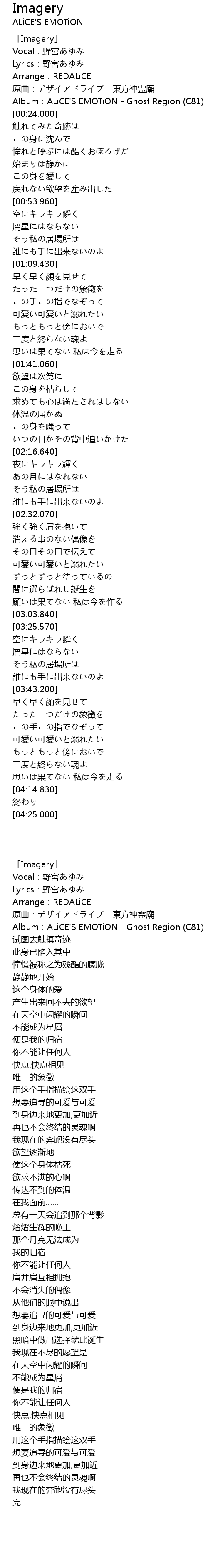 | [00:20.000] | Album: ALiCE' S EMOTiON Ghost Region C81 |