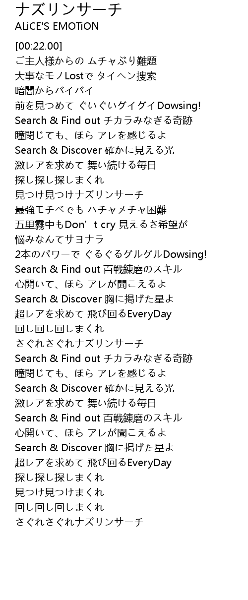 | [01:11.01] | 見つけ見つけナズリンサーチ |