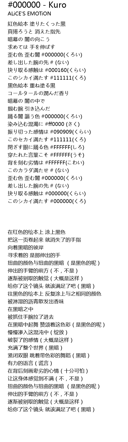 | [03:32.50] | 歪む色 歪む闇 #000000(くろい) |