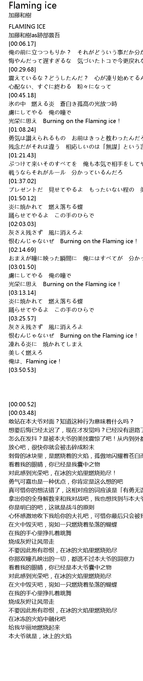 | [03:45.46] | 俺は、Flaming ice! |
