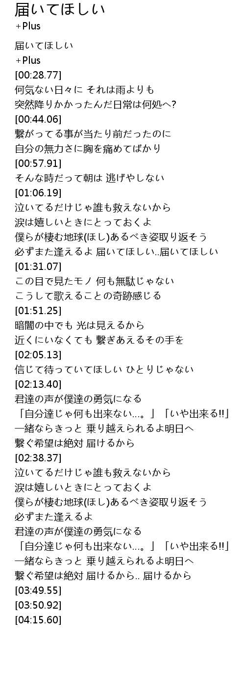 | [00:00.33] | 届いてほしい |