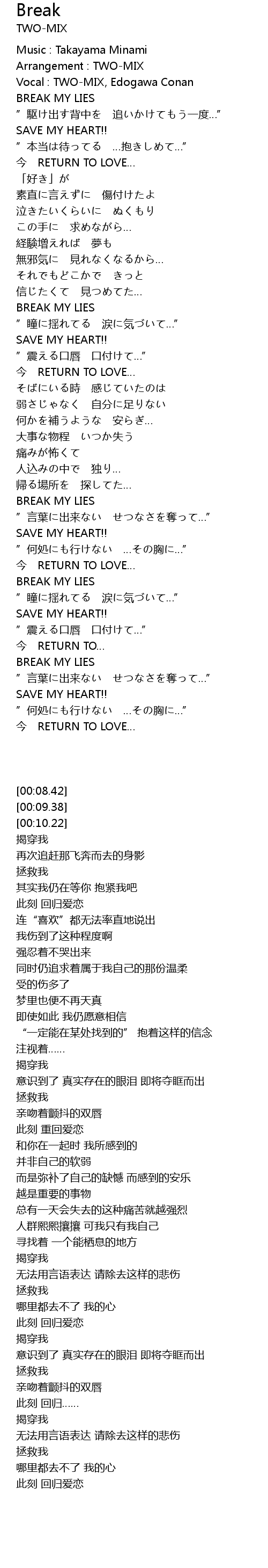 | [02:22.31] | BREAK MY LIES |