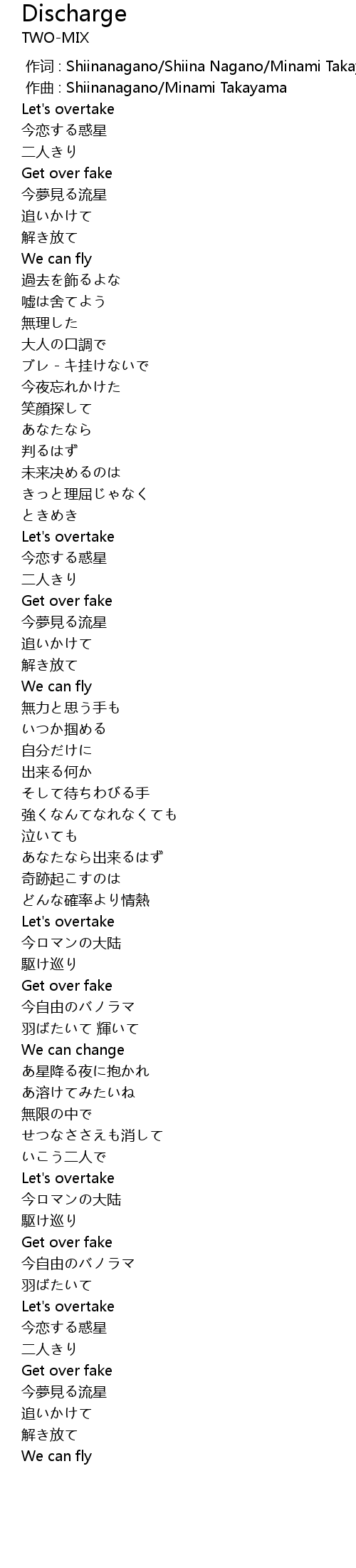 | [00:01.000] | zuo qu : Shiinanagano Minami Takayama |