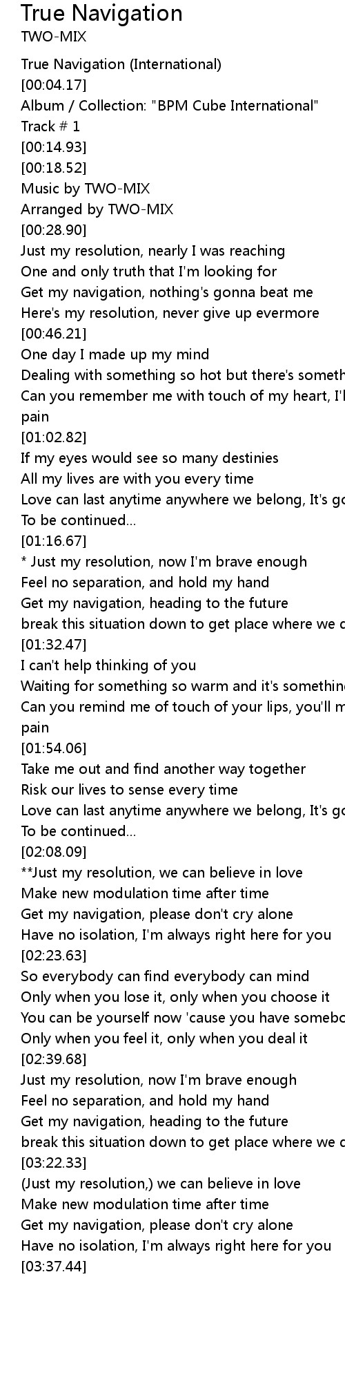 | [00:37.47] | Get my navigation, nothing's gonna beat me |