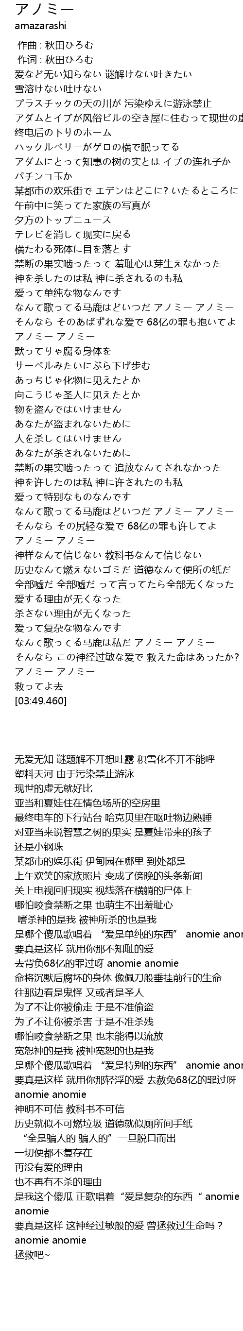 | [02:32.180] | そんなら その尻轻な爱で 68亿の罪も许してよ アノミー アノミー |
