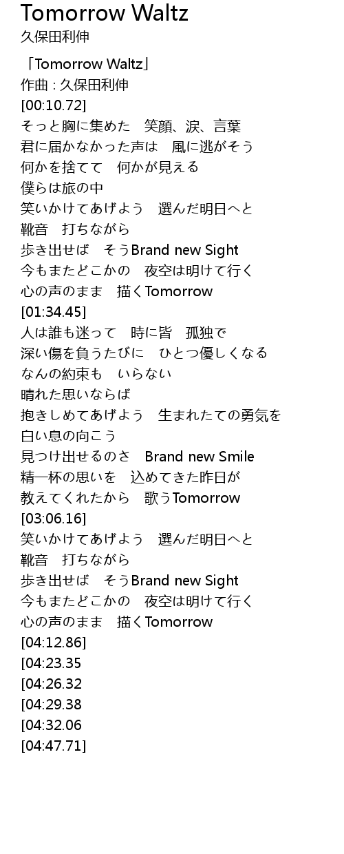 | [00:02.72] | 「Tomorrow Waltz」 |