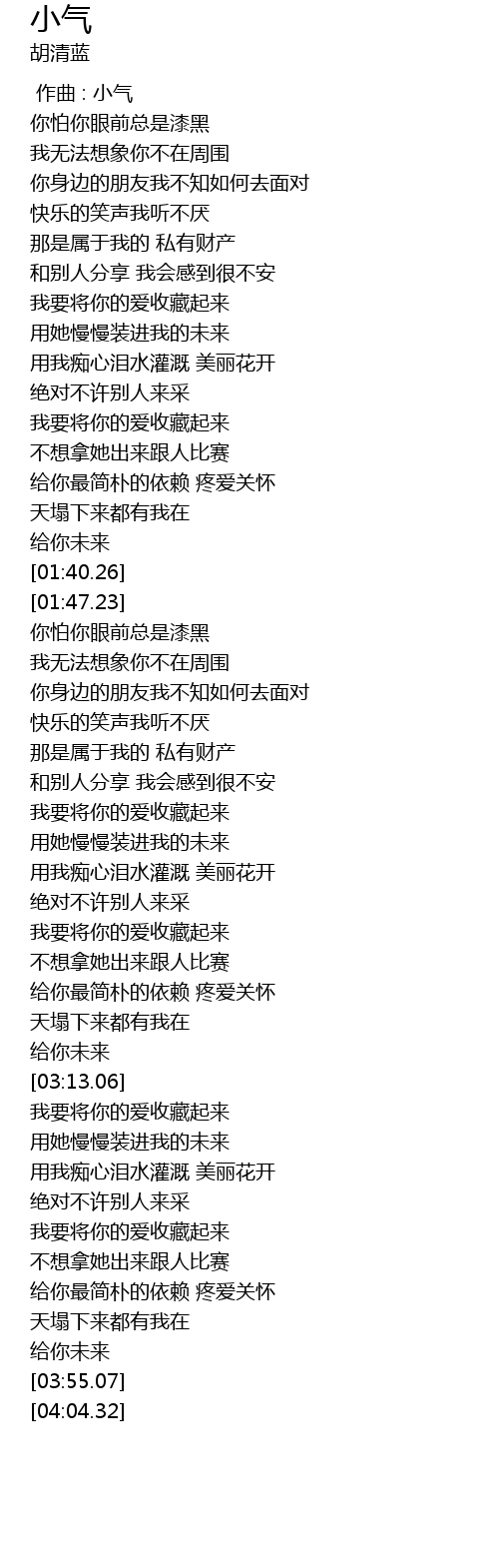 | [00:00.00] | 作曲 : 小气 |
