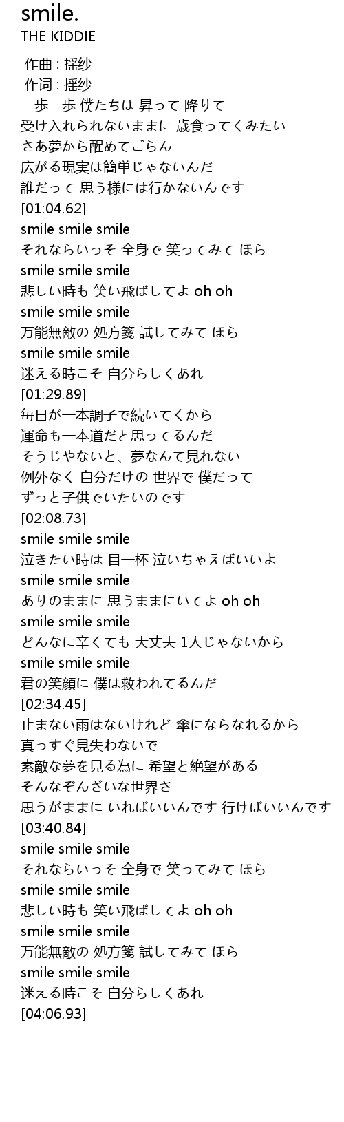 | [03:43.03] | それならいっそ 全身で 笑ってみて ほら |