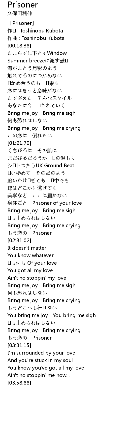 | [00:01.38] | 「Prisoner」 |