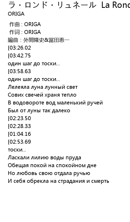 | [00:01.00] | 作词 : ORIGA |