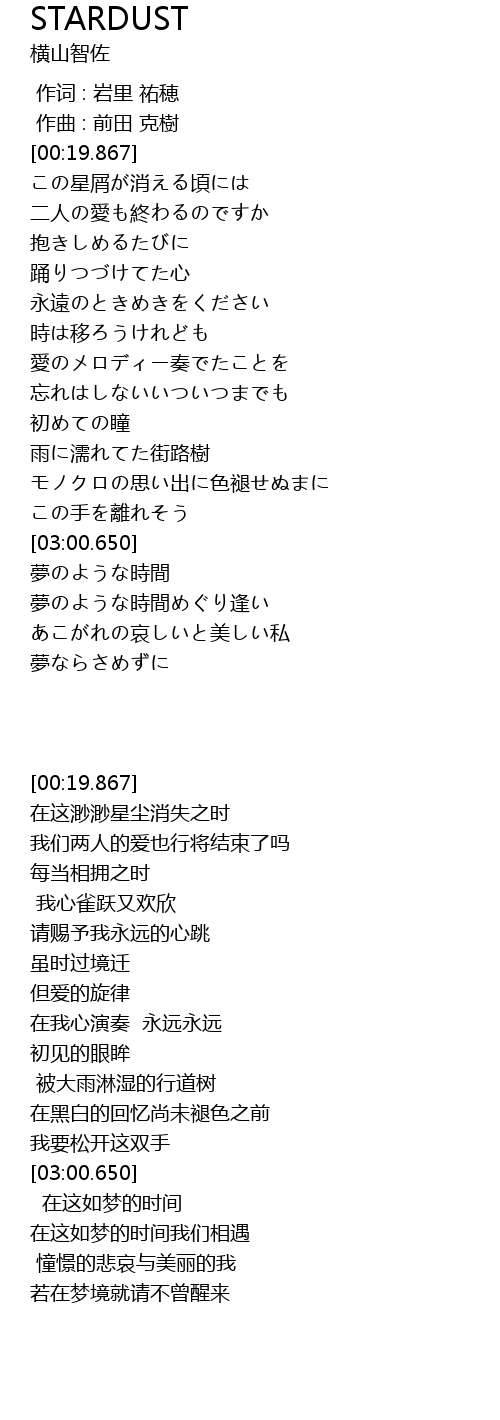 | [00:39.302] | この星屑が消える頃には |