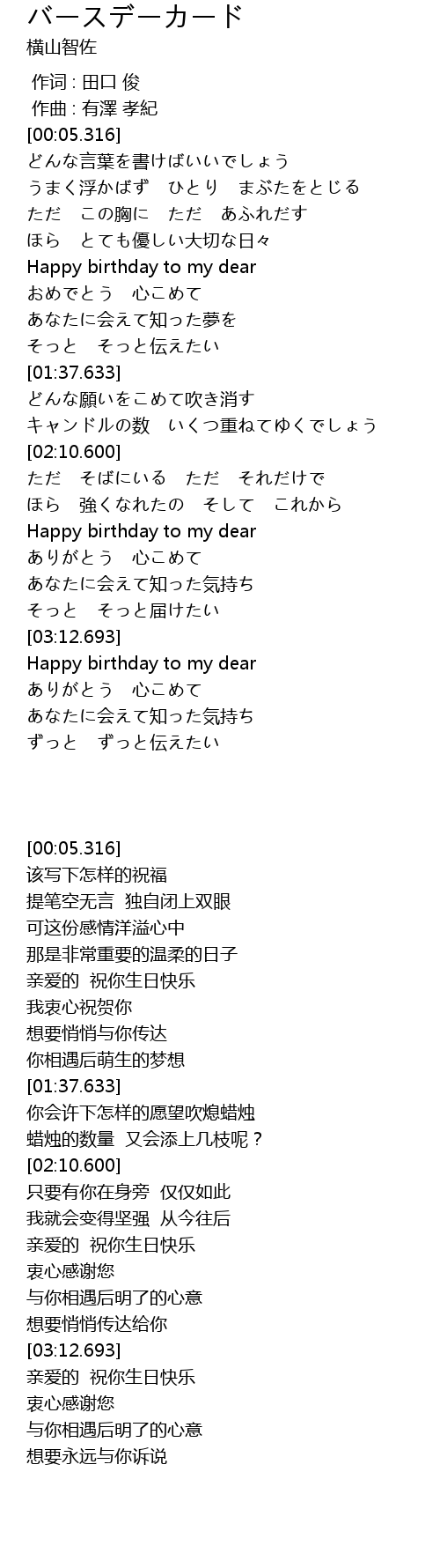 | [03:37.431] | 亲爱的 祝你生日快乐 |