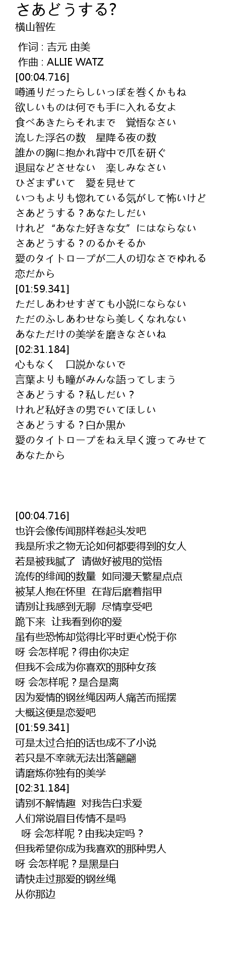 | [03:06.345] | 呀 会怎样呢?由我决定吗? |