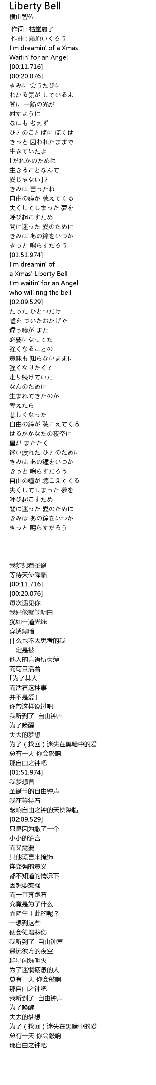 | [03:35.132] | 自由の鐘が 聴こえてくる |