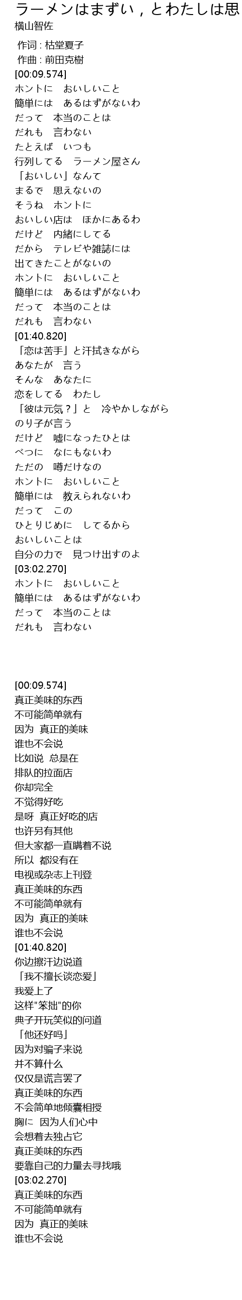 | [03:45.189] | 因为 真正的美味 |