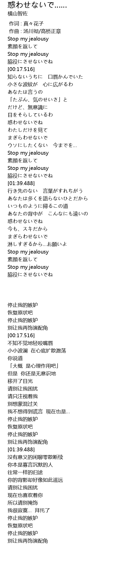 | [00:00.405] | Stop my jealousy |