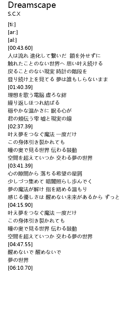 | [04:37.30] | 空間を超えていつか 交わる夢の世界 |