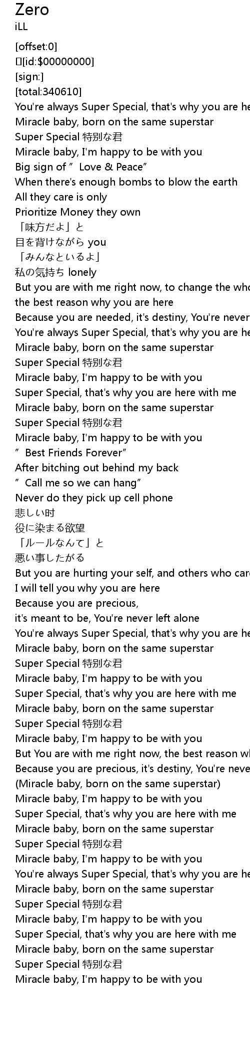 | [00:01.638] | You' re always Super Special, that' s why you are here with me |