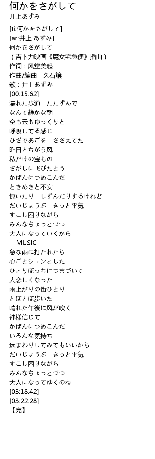 | [00:03.38] | (吉卜力映画《魔女宅急便》插曲) |