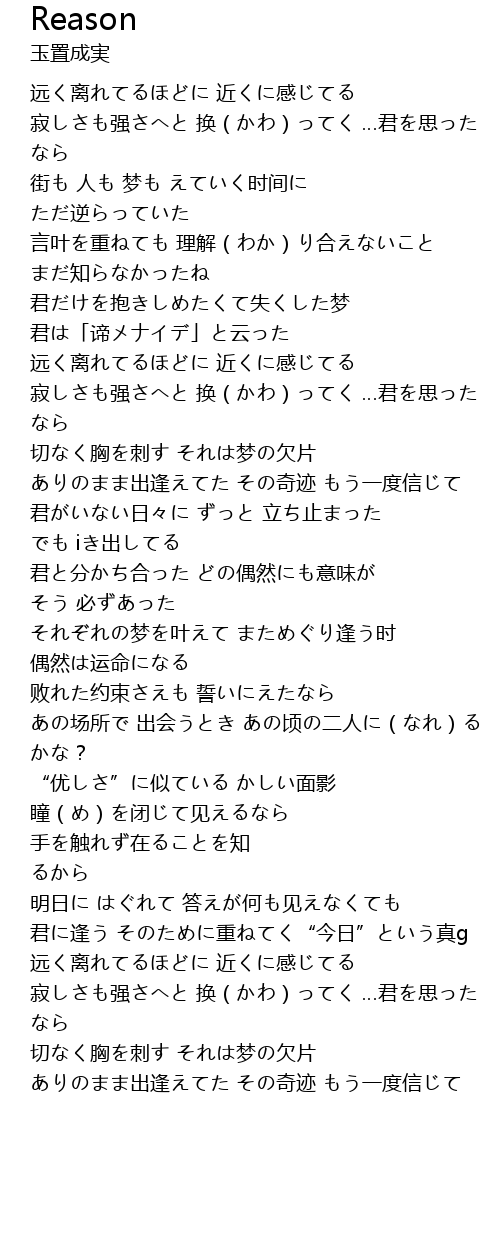 | [00:08.620] | 寂しさも强さへと 换(かわ)ってく …君を思った |