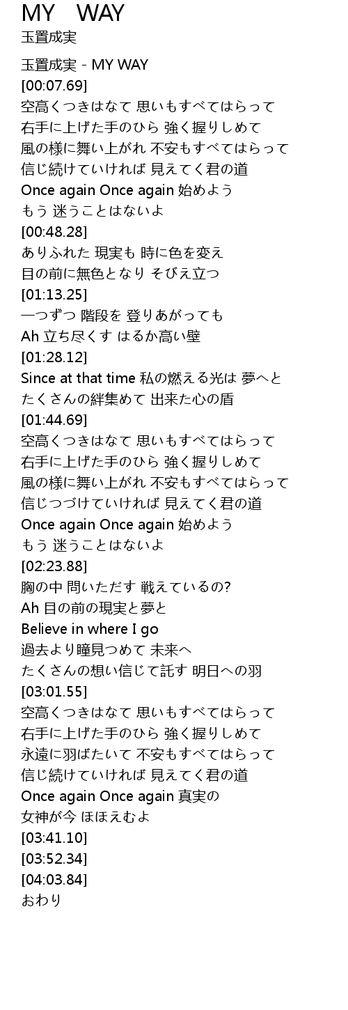 | [00:00.00] | yu zhi cheng shi MY WAY |