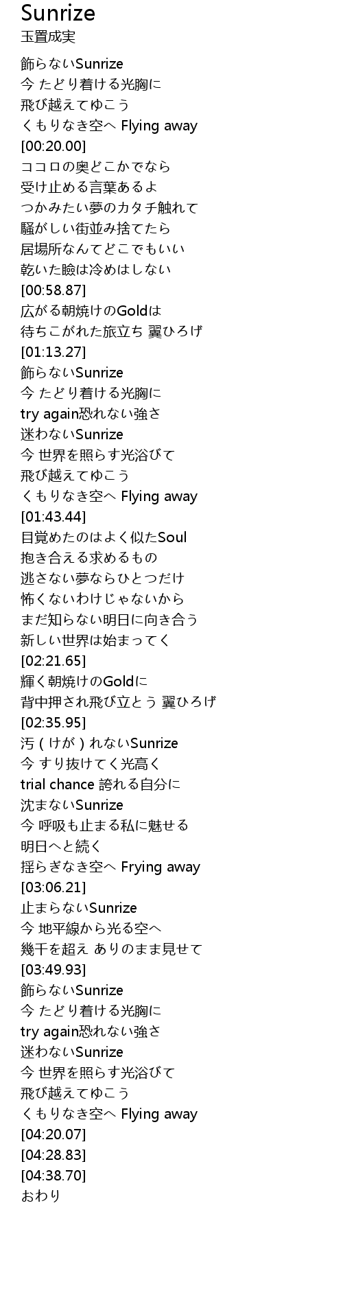 | [04:03.76] | 迷わないSunrize |