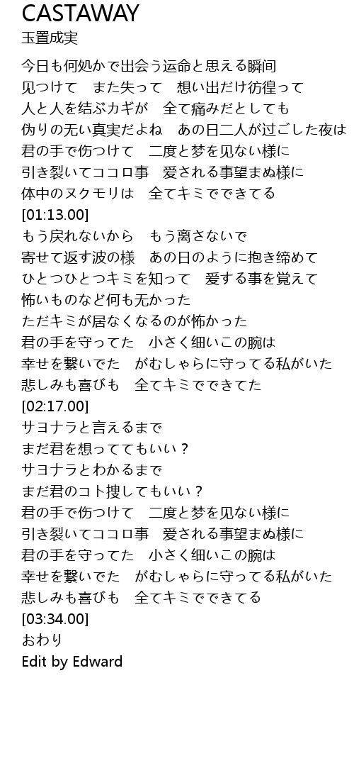 | [01:46.00] | ただキミが居なくなるのが怖かった |
