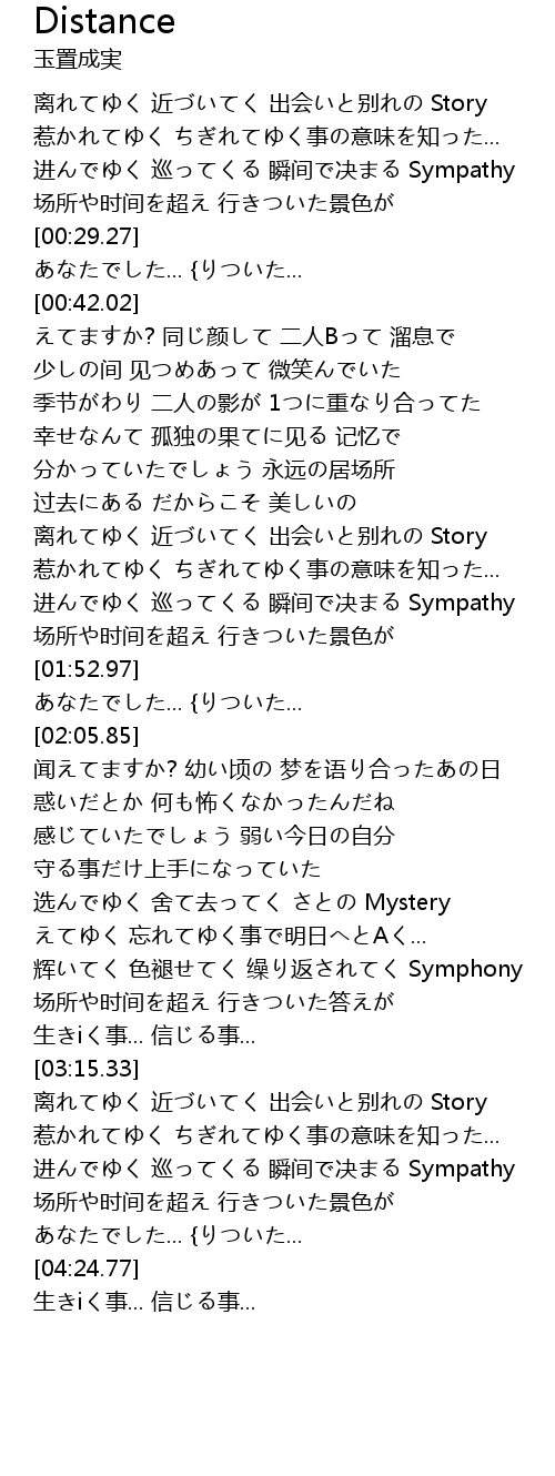 | [03:45.43] | 离れてゆく 近づいてく 出会いと别れの Story |