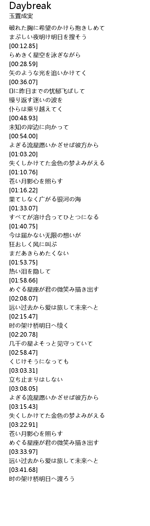 | [03:43.11] | 时の架け桥明日へ渡ろう |
