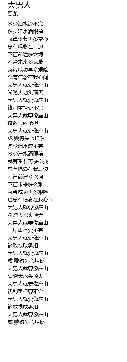 | [01:23.499] | 大男人就要像座山 |