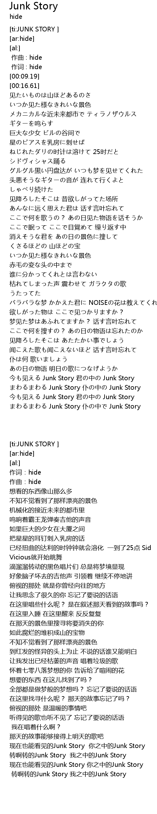 | [04:04.66] | 今も见える Junk Story 君の中の Junk Story |