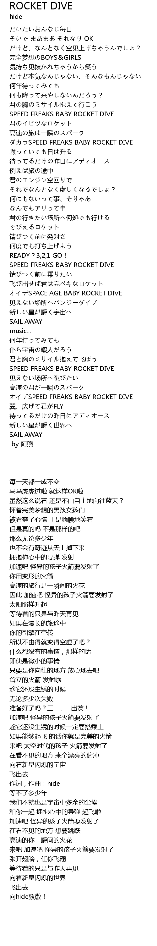 | [00:58.94] | SPEED FREAKS BABY ROCKET DIVE |