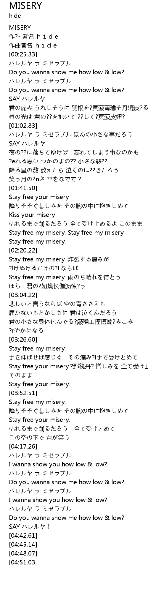 | [04:34.75] | ハレルヤ ラ ミゼラブル |