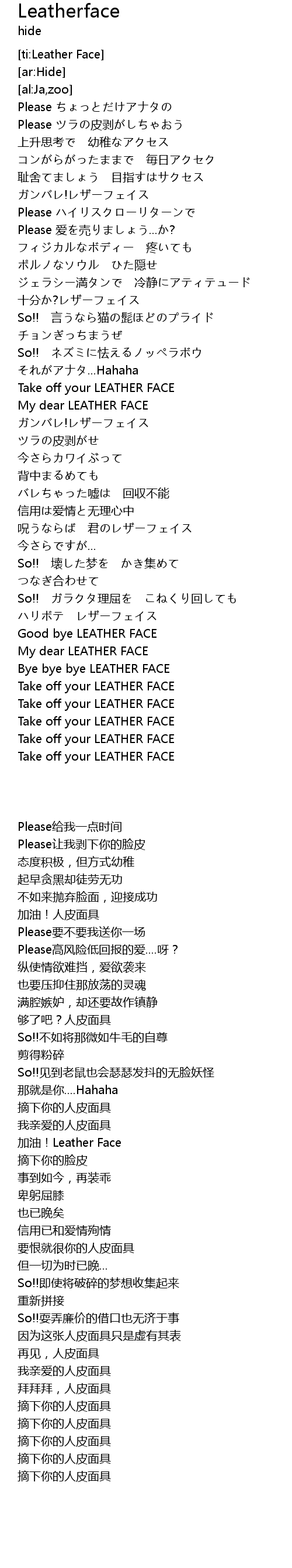 | [00:34.56] | Please让我剥下你的脸皮 |